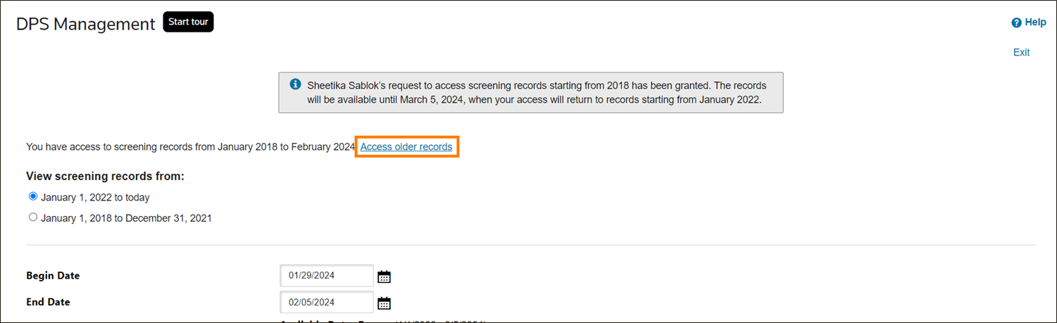 screen as well as an email when your request is approved. The additional records will then be accessible in your