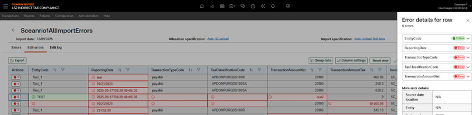 Importing data is time-consuming and manual. Errors required users to exit the application, correct the source file externally, and re-upload—a repetitive process that slowed workflows, especially for large transactional volumes. | The Import Self Service feature eliminates manual re-uploads. Users can now review, correct, and reprocess errors directly within the application. This provides instant validation and clear guidance, significantly reducing time spent on imports and lowering compliance risk. | The Import Self Service feature provides an intuitive and efficient way to handle data issues, focusing solely on streamlined error resolution.