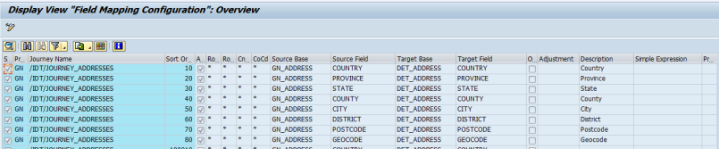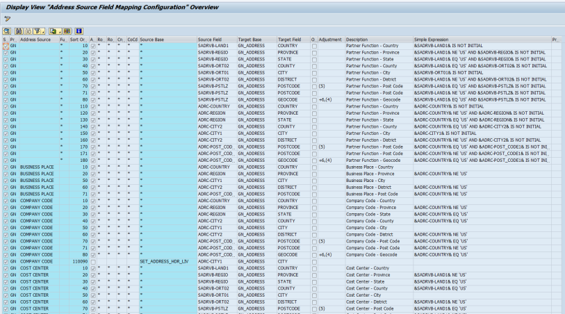This new mapping table exposes to the customer mappings that were part of the class that was attached to the address source. You can see in the example below that it maps the address source or partner function to the target field in the Integration. The table is populated with all the standard mappings that are required and would normally not need to be appended with custom mappings unless the customer has created a new custom address source or has added new fields to the address sources as needed for Oil & Gas customers, etc.