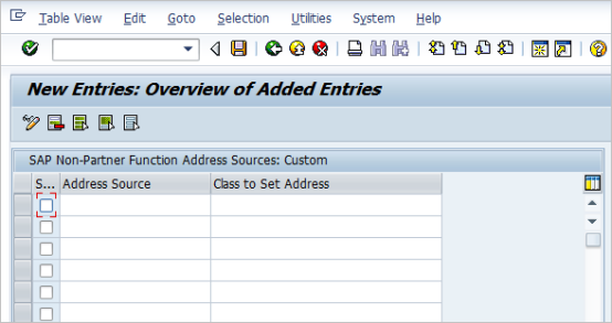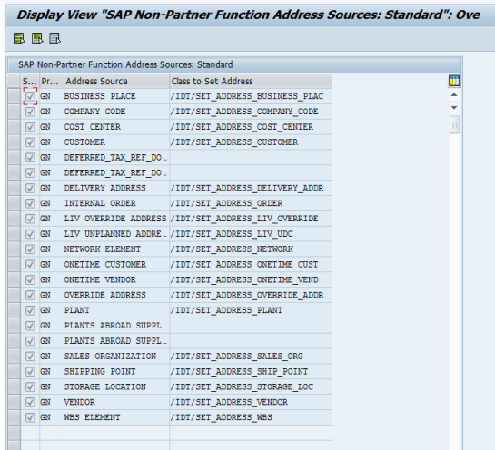 The Address Source table represents a list of SAP address entities supported with Integration. Behind each address source, code has been implemented that knows how to gather the necessary data based on the business process used. The address sources are in addition to the partner function based addresses supported in the address mapping.