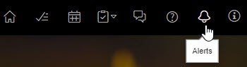 The Alerts feature on the ONESOURCE platform toolbar allows you to set up notifications about your work. The Alerts page shows alerts for up to 30 days. These alerts are created by you and are only visible to you.