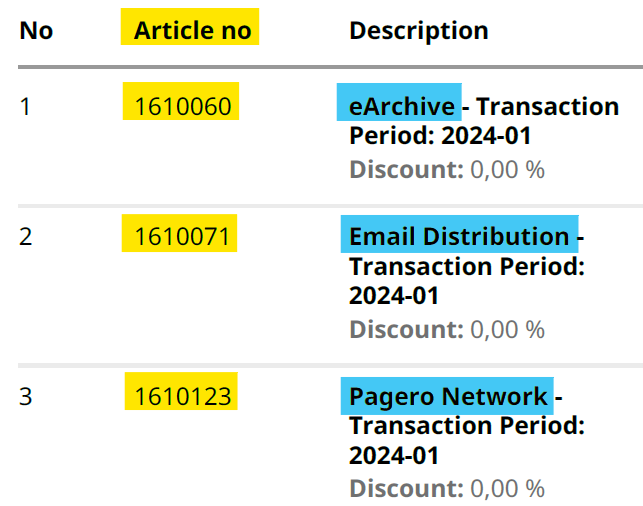 In the new layout it’s called “Article no” pictured here marked in yellow. The service name is noted to the right of the article number marked in blue.