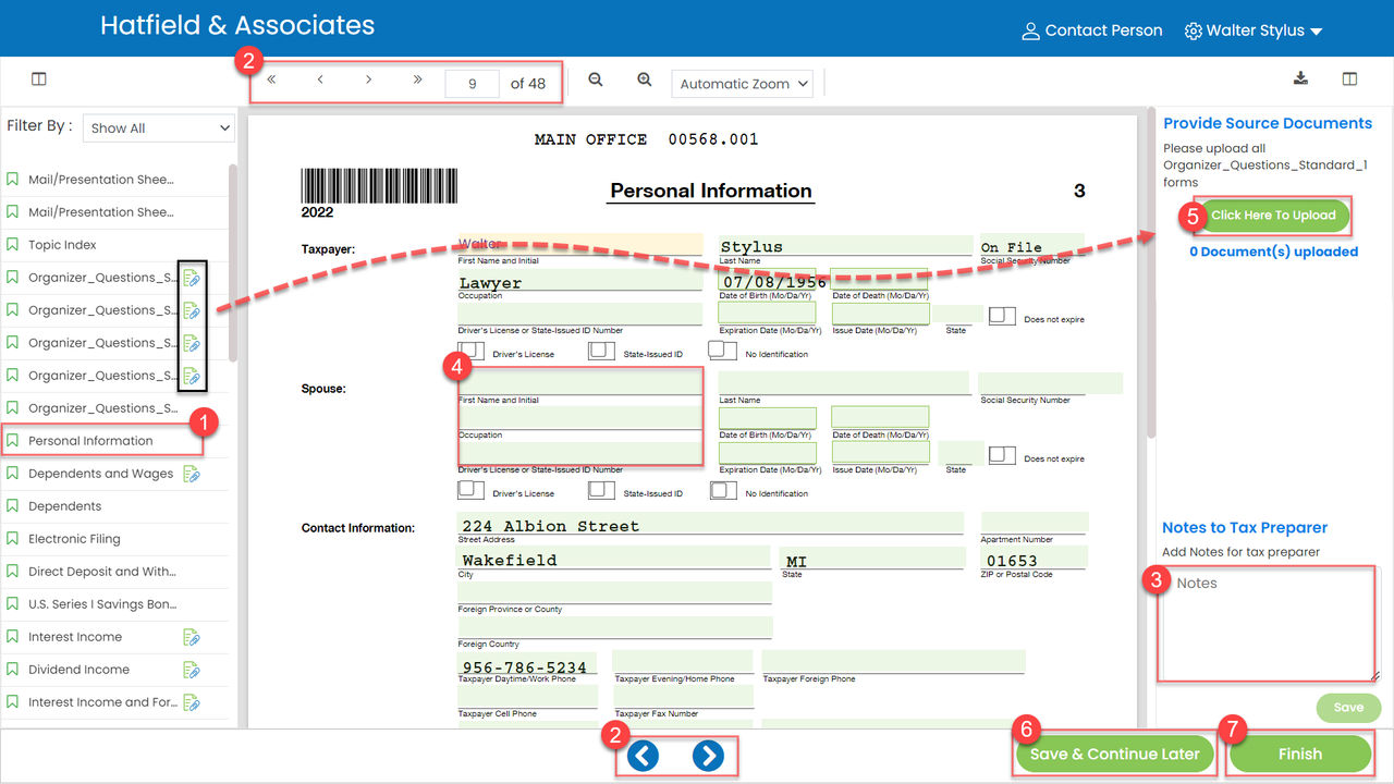 If your firm allows, you will have the option to upload tax source documents within your organizer.