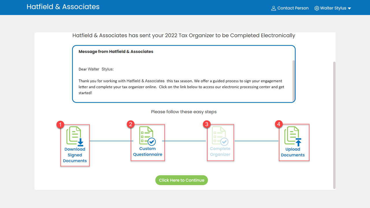 View a message from your tax preparer.