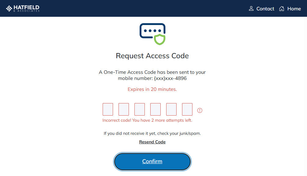 The firm sends access codes by texting or emailing the taxpayer, depending on the taxpayer information on file. If there's a mobile phone number on file, the system texts the access code to the taxpayer. Otherwise, the system emails the access code instead.