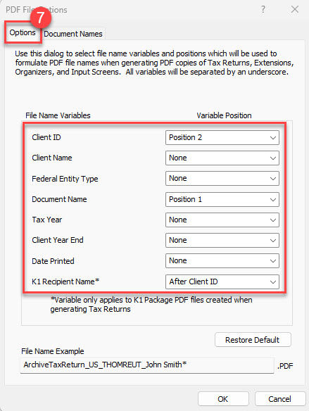 This print option assembles and configures the organizer PDF with all the SafeSend requirements in place. This integration is available for UltraTax CS® 2025 and later.