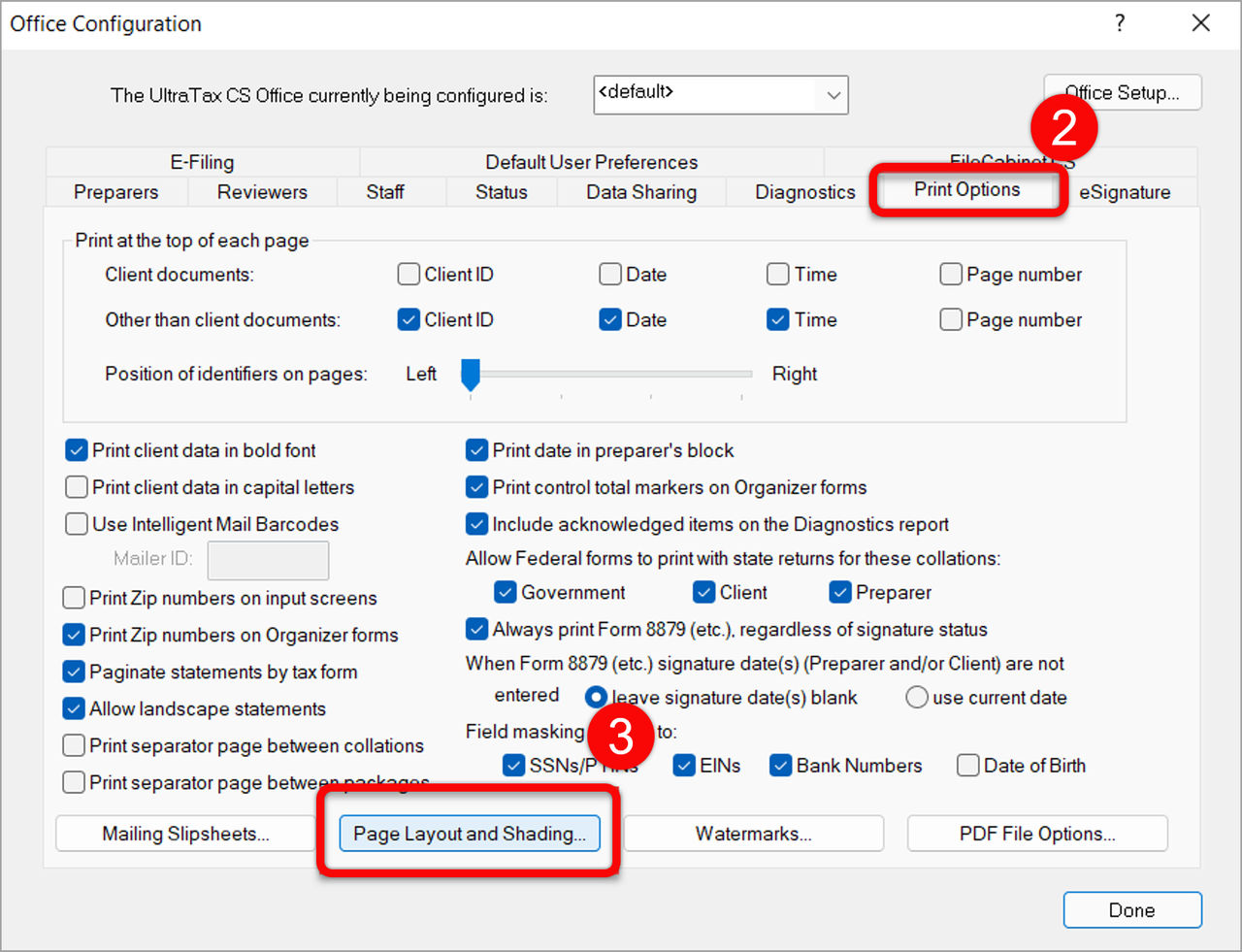 UltraTax CS® print settings for organizers and engagement letters