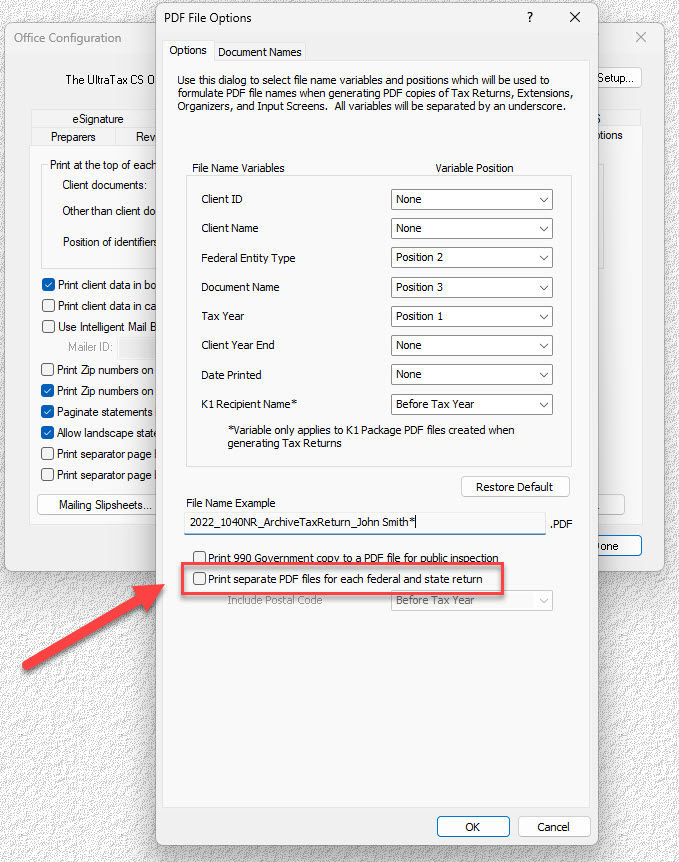 Print separate PDF files for each federal and state return