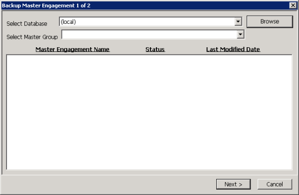 Use this window to back up a master engagement.