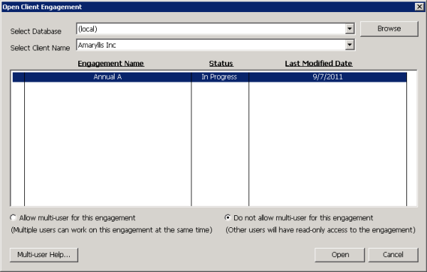 You can open any saved client engagement by selecting