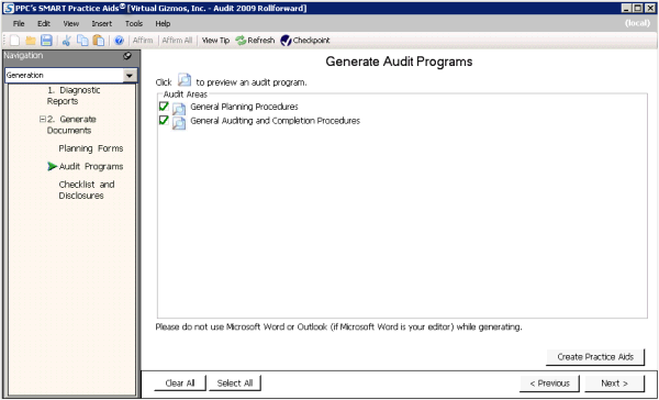 The final step in the risk assessment process is to generate the engagement's planning forms and audit programs.