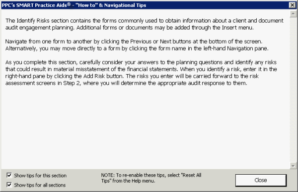 window automatically appears, providing helpful information specific to the section in which you are working. Subsequently, you can display a tip at any time by clicking