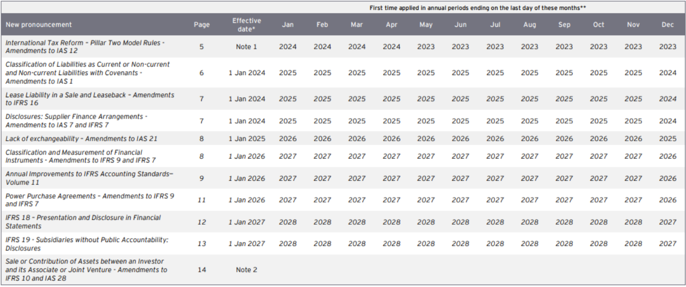 This overview covers year-end reporting until December 31, 2025. Therefore, it includes pronouncements with an effective date of January 1, 2025, as these must be applied for the 1st time for financial years ending, for example, on January 31, 2025.