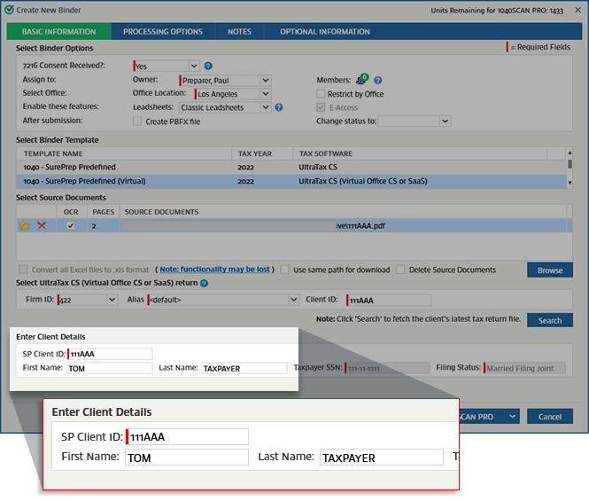 10. If the name of the 1st source document matches the Tax Client ID in UltraTax, the