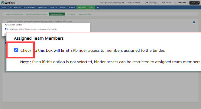 7216 Consent | Not having 7216 Consent to access binders or TaxCaddy client profile. |