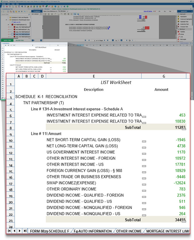 Blue | K-1 reclass recommendations based on how it was captured in the prior year by your firm (that is, proforma). |