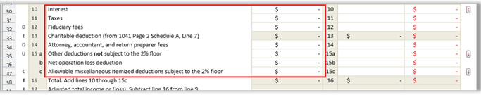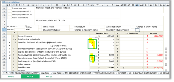 SurePrep covers the following type of trust return fields in SPbinder and LeadSheet calculation: