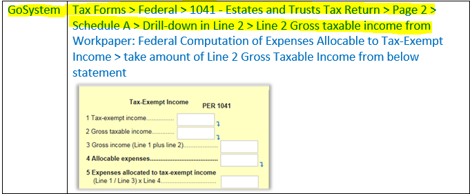 Follow this path to get the Gross Taxable Income amount from the Tax Software: