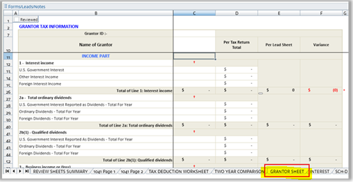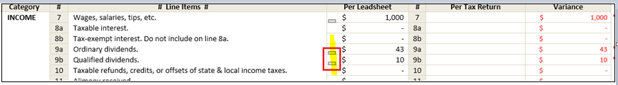 sign indicates that user should enter data manually from Tax software into the Leadsheets. System won’t auto populate these amounts in Leadsheets.