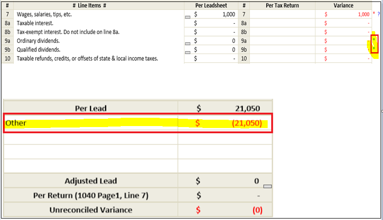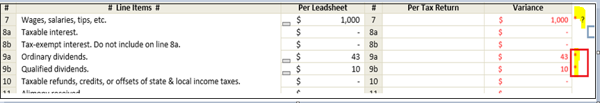 sheet from the tax software. This will help to remove variances from the Deductions.