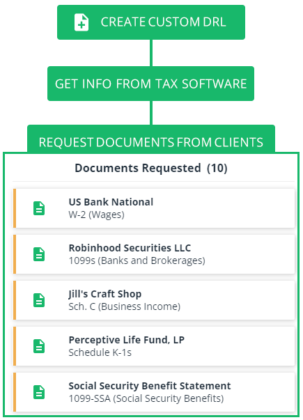 Creating Custom DRL (Document Request List) lets you automate the task of requesting tax documents from your clients based on the proforma information in the tax software. Each client can upload their own requested documents when they log in.