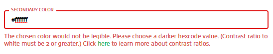 | 1.2 or greater against white color #ffffff & 2.5 or greater against black color #000000 |