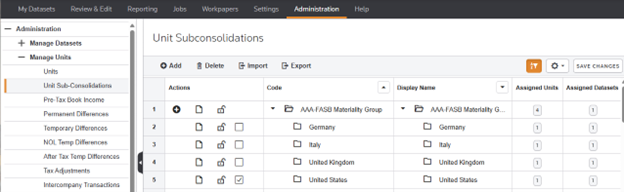 If the selected materiality threshold is 5% (ETRMATERIALPERCENT) and the Group Rate is 21%, then the threshold applied to each rollup is 1.05% of PTBI of the CSC group: ((5% x 21% = 1.05%+/-) or greater x PTBI of the CSC).