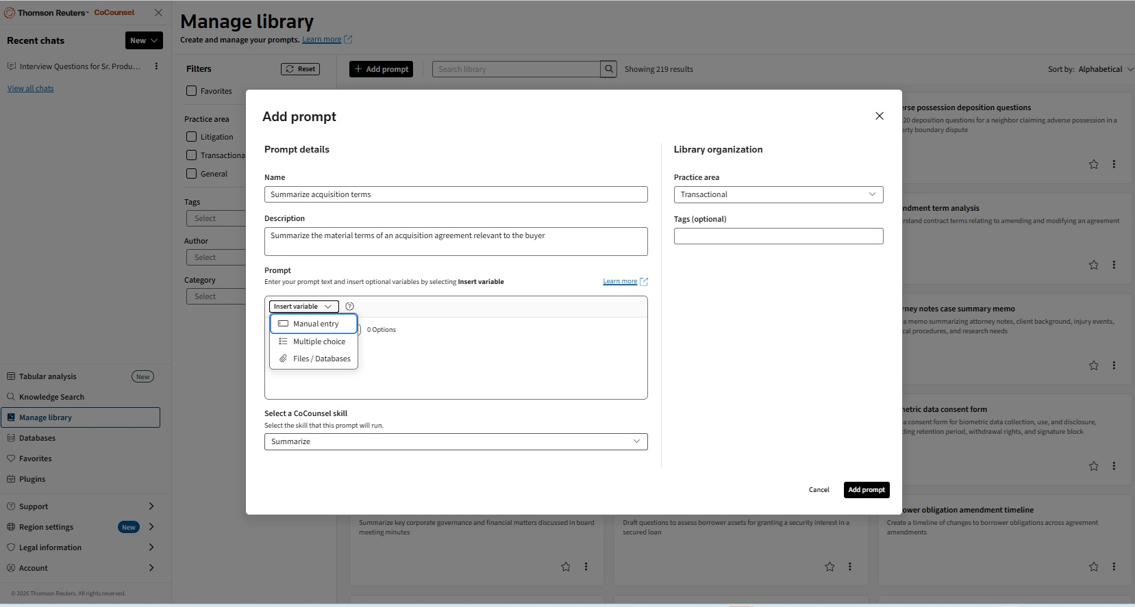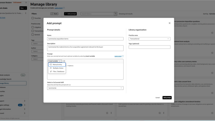You can now create, customize, save, and share prompts in empowering teams such as practice groups to standardize prompting for repeatable legal work and outputs.