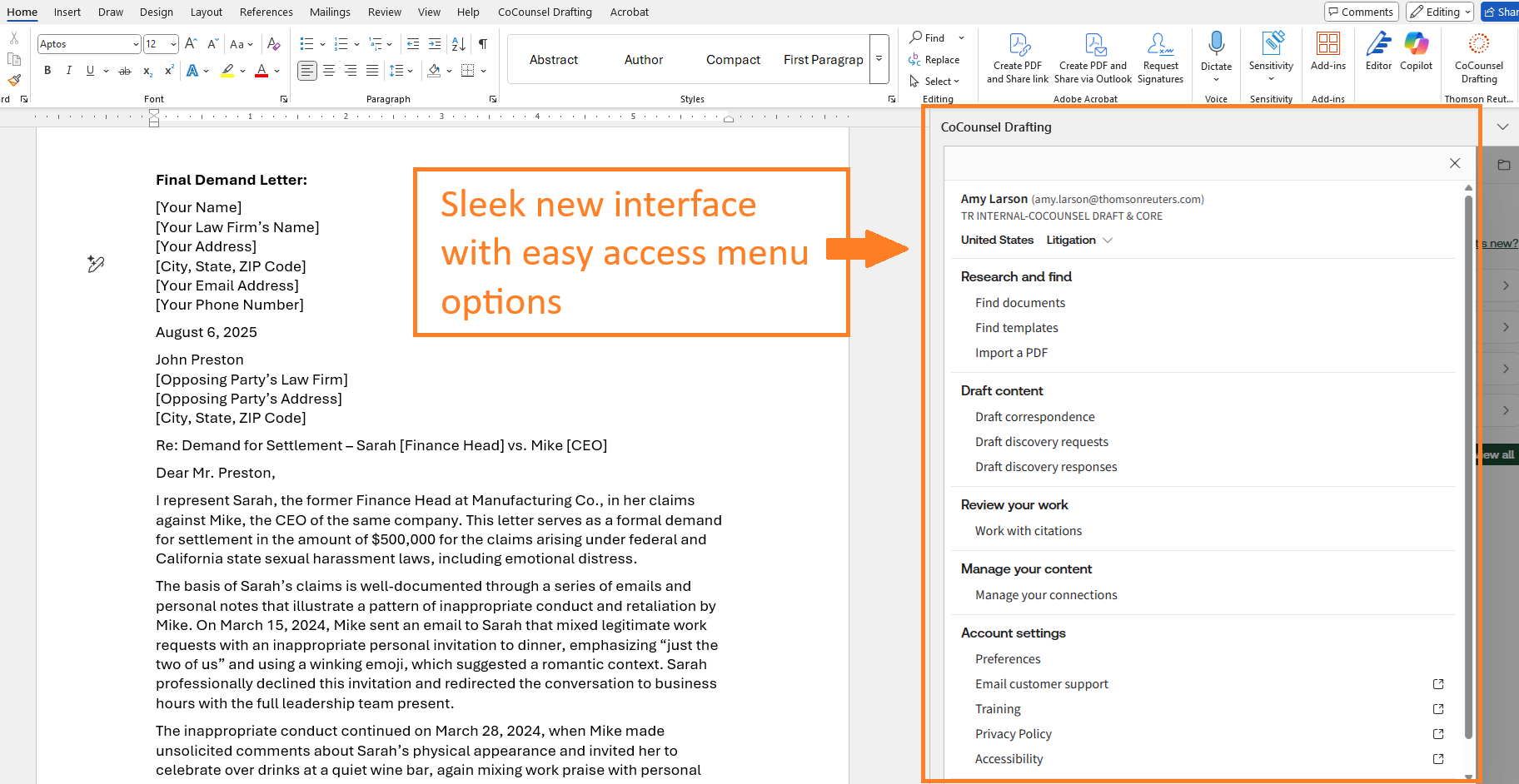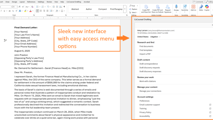 UX/UI Refresh – CoCounsel Microsoft Word Add-in