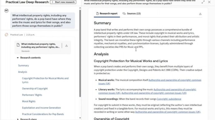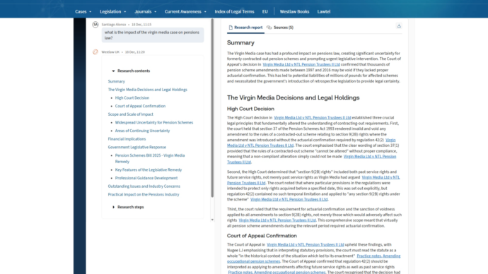 Deep Research on Westlaw Advantage UK is a multi‑step, agentic research tool that builds, executes, and iteratively improves a research plan using trusted Westlaw content. It enables the ability to streamline complex research by easily gathering the right authorities with minimal effort and move from research to strategy with greater confidence and speed.