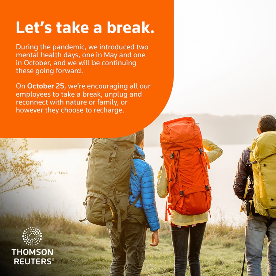 This year, we’re rolling out new initiatives and commitments. On October 25, we’re encouraging all our employees to take a break, unplug and reconnect with nature or family or however they choose to recharge. In our busy lives with always on technology, it’s important that we make time to disconnect. I’m looking forward to spending time outdoors with my family. Introduced for the first-time last year, this month’s mental day off - along with a second day in May - are now a permanent feature of our commitment to supporting employee wellbeing.