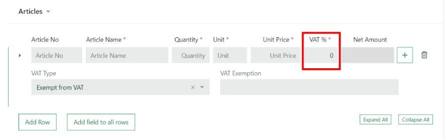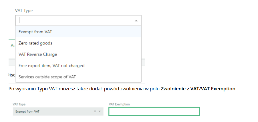 zwolnionego artykułu, ponieważ jest to pole wymagane. Samo wybranie opcjo Zwolnione z VAT nie będzie tu wystarczające.